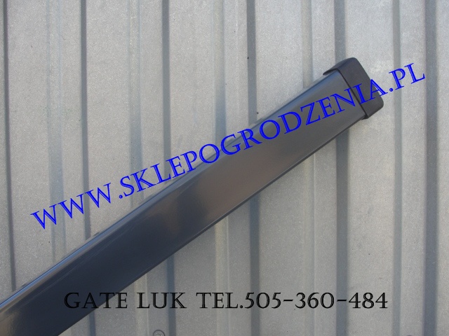 Słupek ogrodzeniowy do paneli z profila 60x40x1,5mm, wys. 260cm., kolor grafitowy. Zabezpieczenie antykorozyjne: ocynkowanie + malowanie proszkowe. Słupek zakończony zaślepką zewnętrzną z tworzywa.
