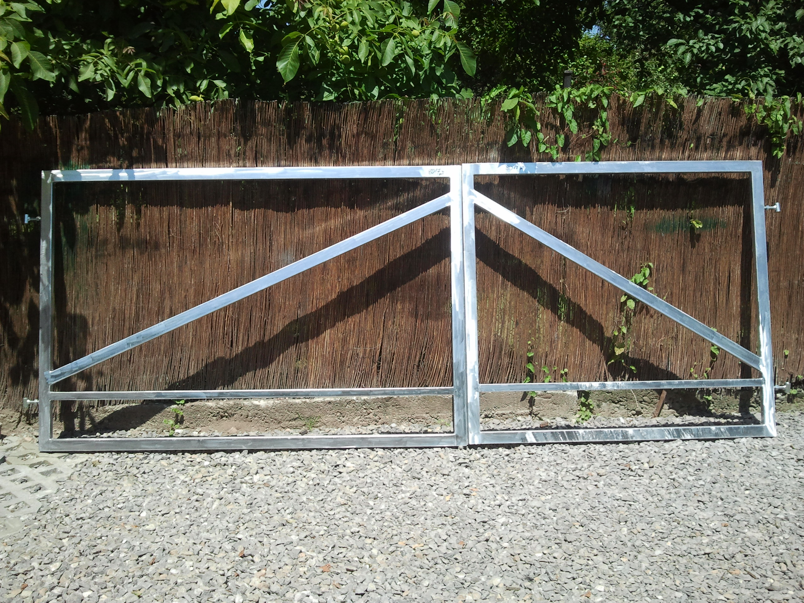 Konstrukcja bramy skrzydłowej bez wypełnienia zawiera - szkielet wykonany z profila 60x40x2 lub 50x40x2, słupek podtrzymujący 80x80. Do zestawu dołączony jest zestaw zaślepek oraz zawiasy a także rygle lub zasuwki. Brama jest standardowo ocynkowana ogniowo. Zamieszczone zdjęcia sa zdjęciami pogladowymi, a ceny są ustalane indywidualnie, uzależnione są bowiem od zmieniających się cen surowców z jakich zostały wykonane! Wykonujemy bramy kute ocynkowane, ocynkowane i malowane proszkowo a ich cena uzależniona jest od wzoru, długości bramy, wykorzystanego materiału i ustalana jest indywidualnie! Wykonujemy ogrodzenia lub bramy na wzór sugerowany przez klienta!!! Możliwość transportu oraz profesjonalnego i kompleksowego montażu, który jest wyliczany indywidualnie w zależności od długości bramy i miejsca do którego musi zostać dostarczona. Atrakcyjne ceny!!! Serdecznie Zapraszamy!!! |